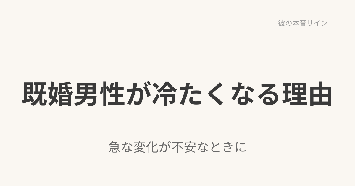 既婚男性の態度が急に変わったように感じるとき、その変化がどのような意味を持つのかを整理したいと思う場面があります。
