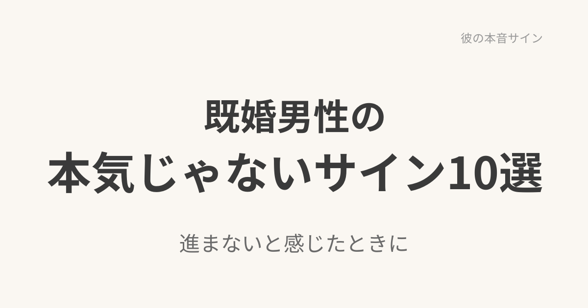 ここでは一般論として、既婚男性が「本気じゃない」可能性が高まりやすいサインを10個に整理します。あわせて、見極めの視点もまとめます。