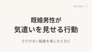 既婚男性が気遣いを見せるときに表れやすい行動を一般論として整理。連絡や言葉選び、距離感から、好意が行動に出る背景を落ち着いて見極める視点をまとめます。