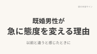 脈ありサイン 既婚男性が本気になり始めるときの変化 既婚男性が本気になり始めるときに見られやすい態度や行動の変化を整理。安定感や慎重さなど、一般的なサインと見極めポイントを解説します。 2025.12.13 脈ありサイン